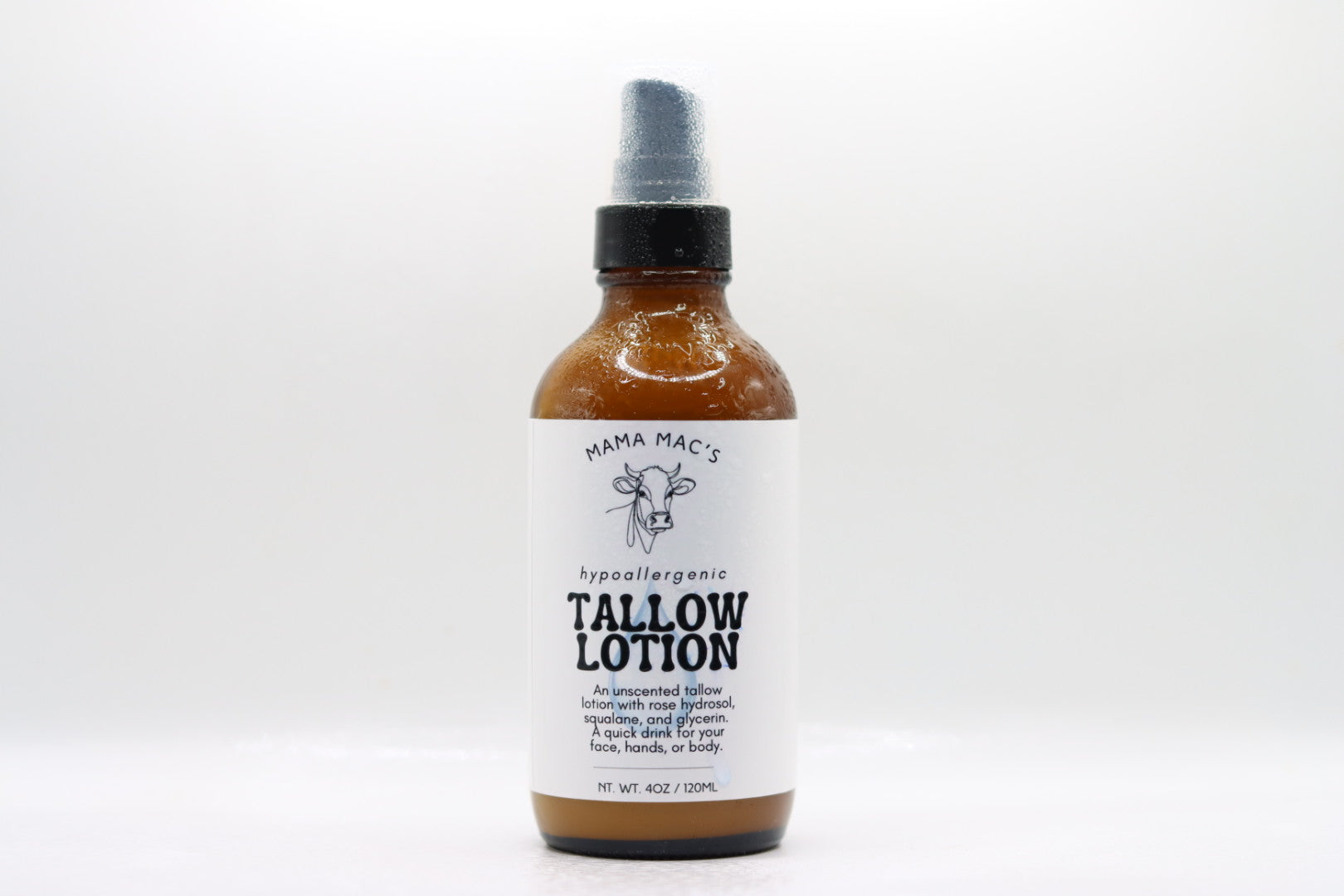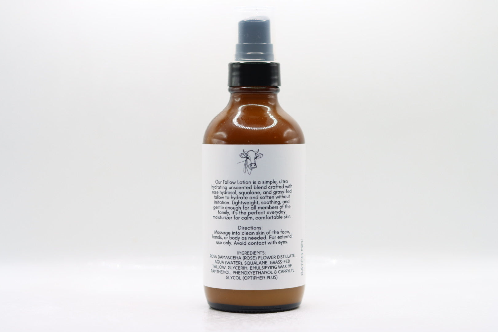 A simple, highly effective everyday lotion crafted for sensitive skin. This unscented formula blends rose hydrosol, 10% squalane, grass-fed tallow, glycerin, and panthenol to deliver lightweight moisture without irritation or heaviness.