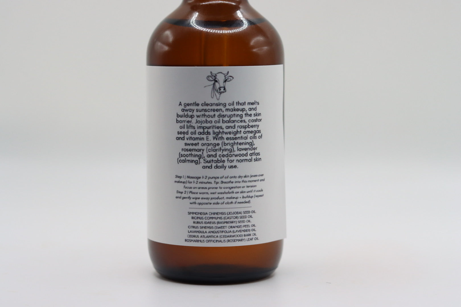 Jojoba oil closely mimics natural sebum to maintain balance, while castor oil lifts impurities for a deep yet comfortable cleanse. Red raspberry seed oil provides lightweight omegas and natural vitamin E for antioxidant protection. The blend is elevated with essential oils of sweet orange (brightening), rosemary (clarifying), lavender (soothing), and cedarwood atlas (calming).