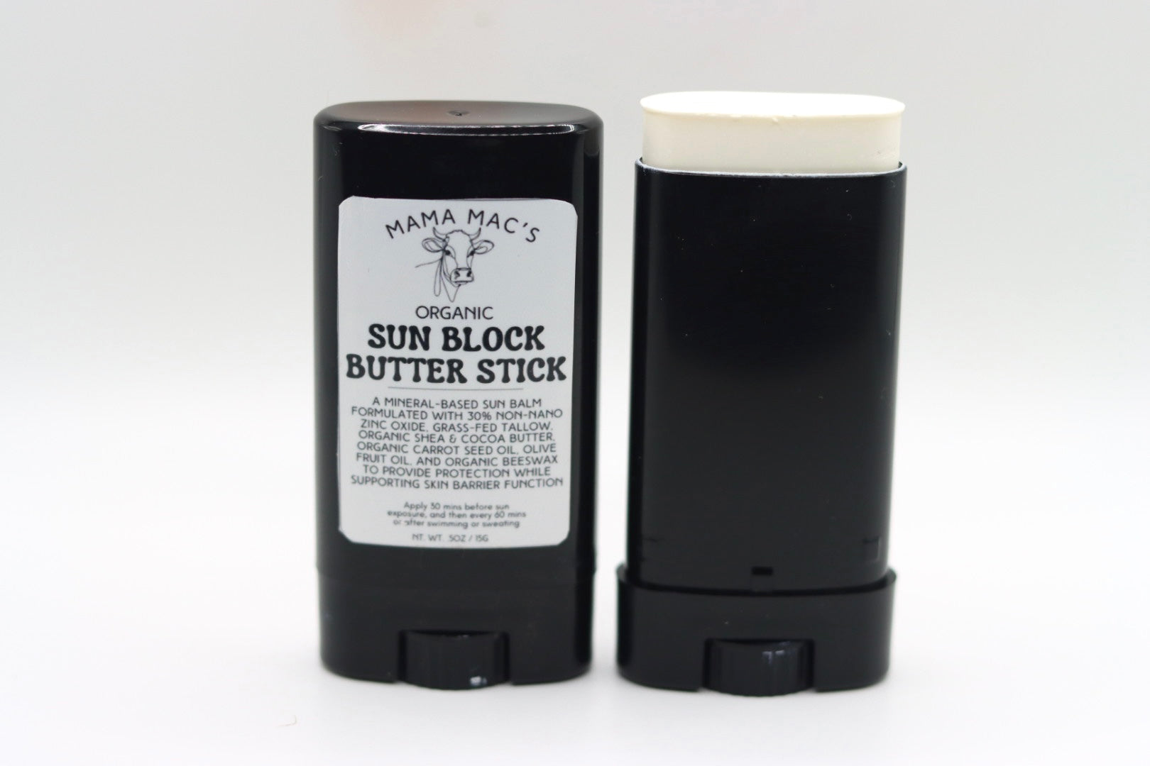 Our Sun Block Butter Stick makes mineral SPF application easy, clean, and kid-friendly. Crafted with organic, whole-skin ingredients, this solid balm glides on smoothly to protect and hydrate without synthetic fillers or irritants.