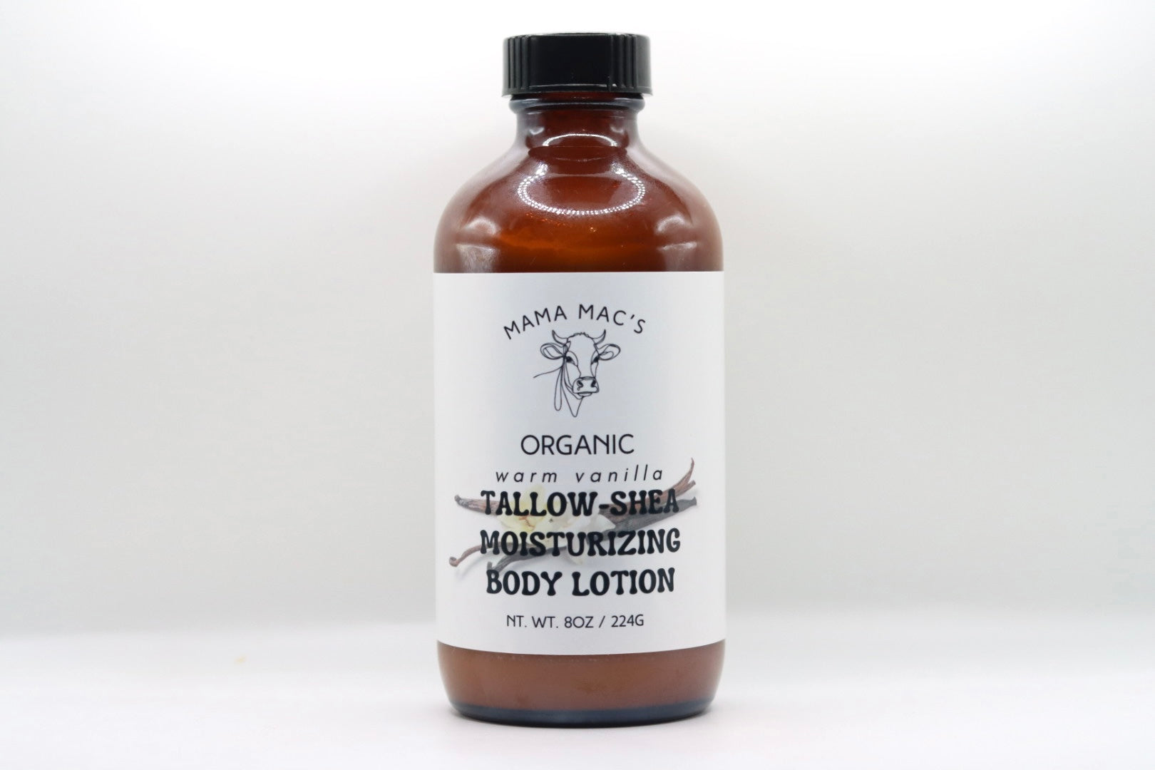 A deeply hydrating, non-toxic body lotion made with a short list of clinically effective, nutrient-rich ingredients. Grass-fed tallow delivers essential lipids and fat-soluble vitamins (A, D, E, K) to support barrier strength, skin structure, and long-lasting moisture retention. Raw shea butter provides rich, soothing hydration for dry or irritated skin, while jojoba oil softens and balances without clogging pores.